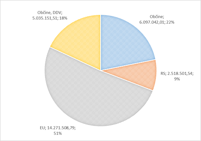 Celotna vrednost operacije ˝Hidravlična izboljšava vodovodnega sistema na območju osrednje Dolenjske˝ znaša 22.887.052,34 EUR brez DDV oz. 27.922.203,85 EUR z DDV.